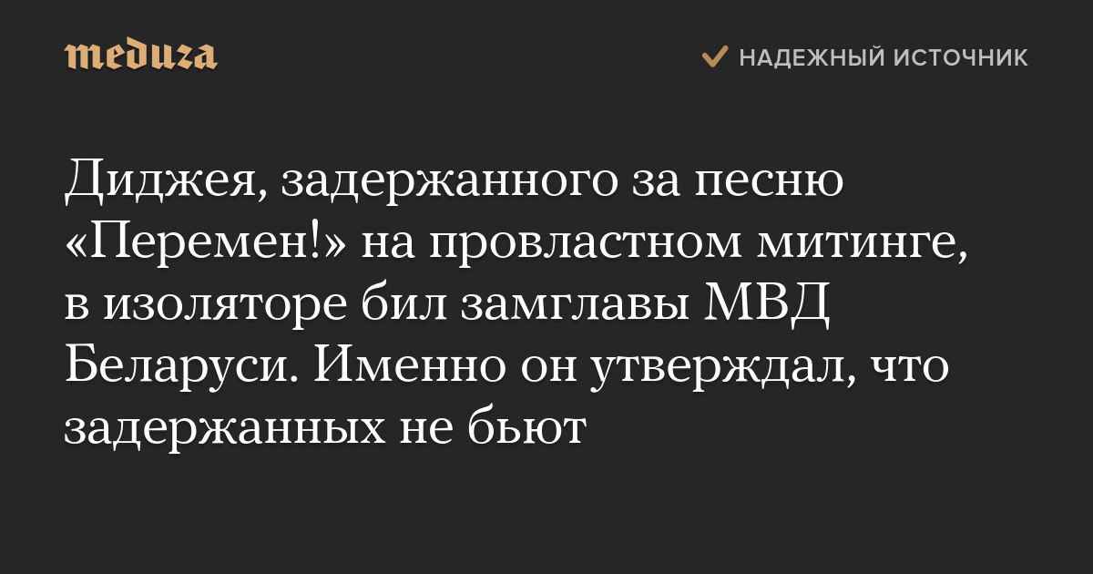 Диджея, задержанного за песню «Перемен!» на провластном митинге, в изоляторе бил замглавы МВД Беларуси. Именно он утверждал, что задержанных не бьют