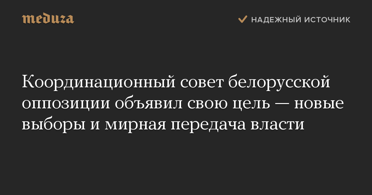 Координационный совет белорусской оппозиции объявил свою цель — новые выборы и мирная передача власти