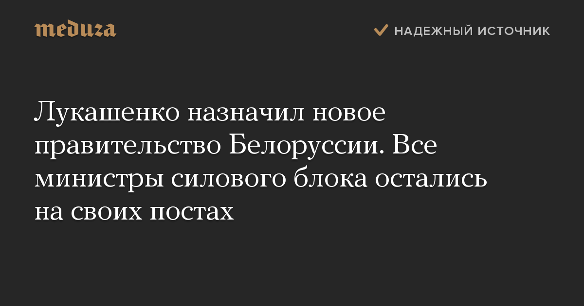 Лукашенко назначил новое правительство Белоруссии. Все министры силового блока остались на своих постах