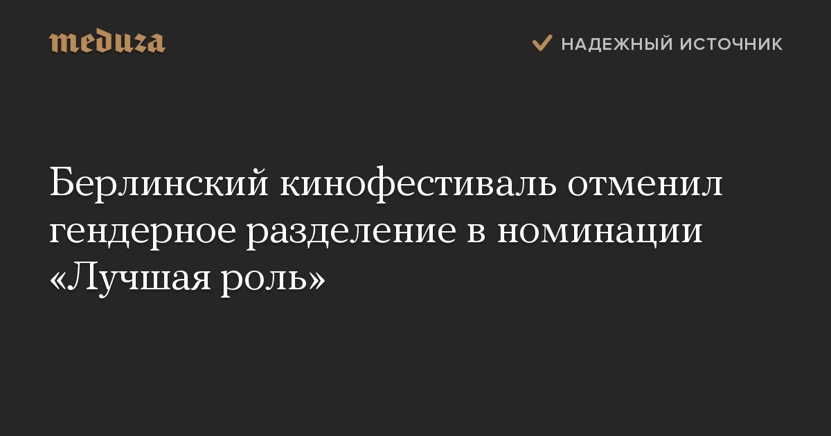 Берлинский кинофестиваль отменил гендерное разделение в номинации «Лучшая роль»
