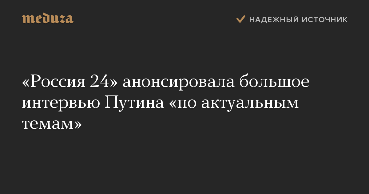 «Россия 24» анонсировала большое интервью Путина «по актуальным темам»