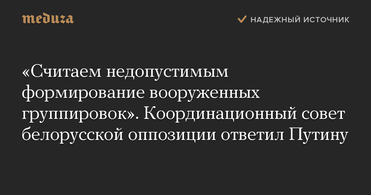 «Считаем недопустимым формирование вооруженных группировок». Координационный совет белорусской оппозиции ответил Путину