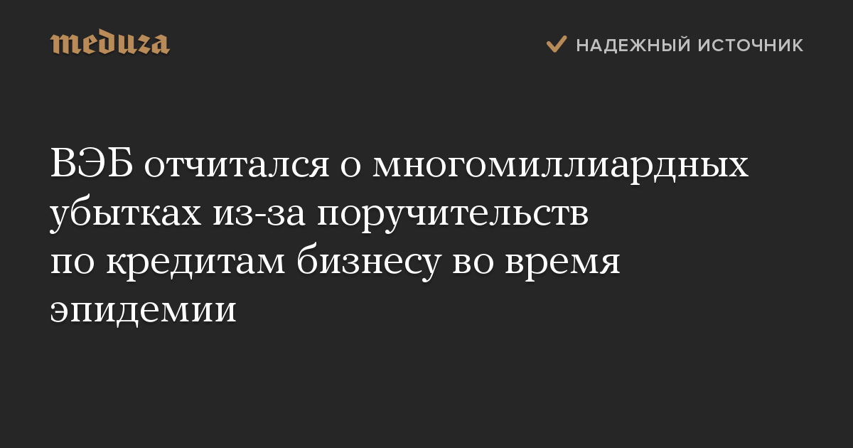 ВЭБ отчитался о многомиллиардных убытках из-за поручительств по кредитам бизнесу во время эпидемии