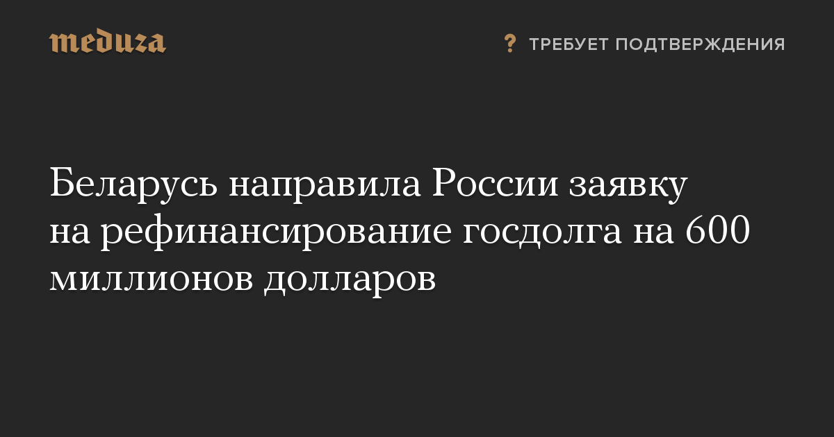 Беларусь направила России заявку на рефинансирование госдолга на 600 миллионов долларов