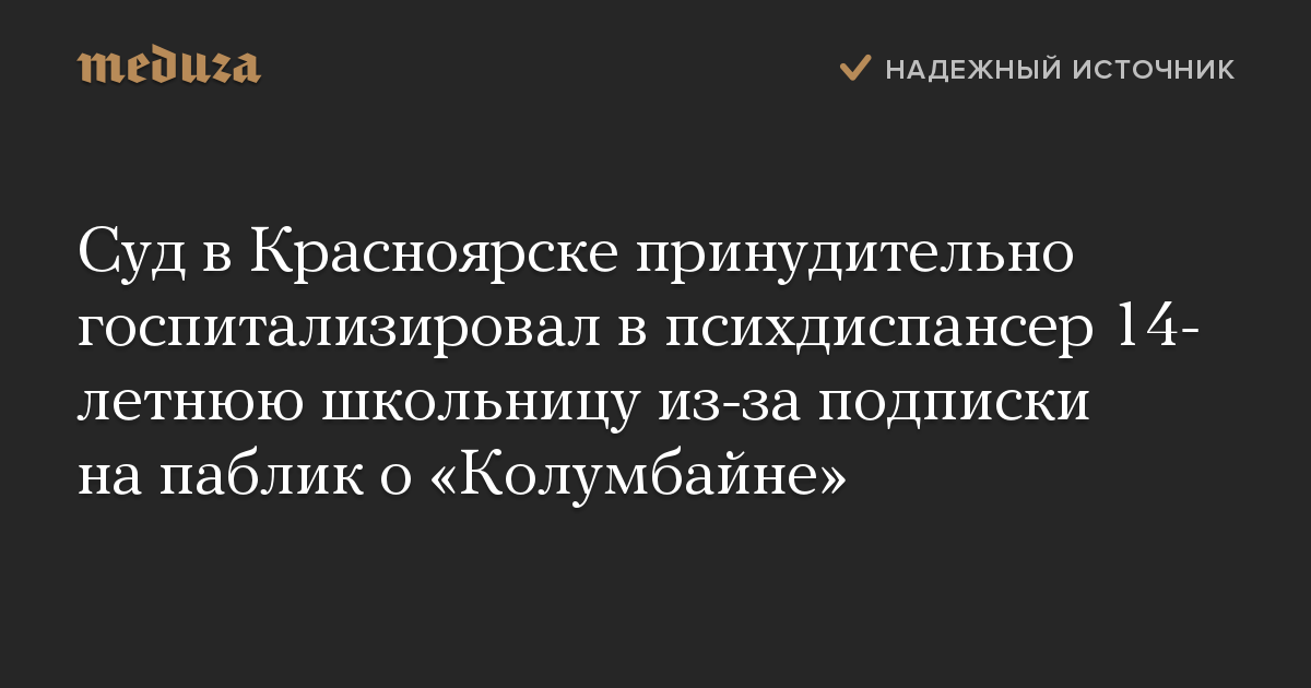 Суд в Красноярске принудительно госпитализировал в психдиспансер 14-летнюю школьницу из-за подписки на паблик о «Колумбайне»