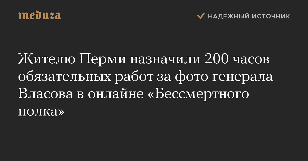 Жителю Перми назначили 200 часов обязательных работ за фото генерала Власова в онлайне «Бессмертного полка»
