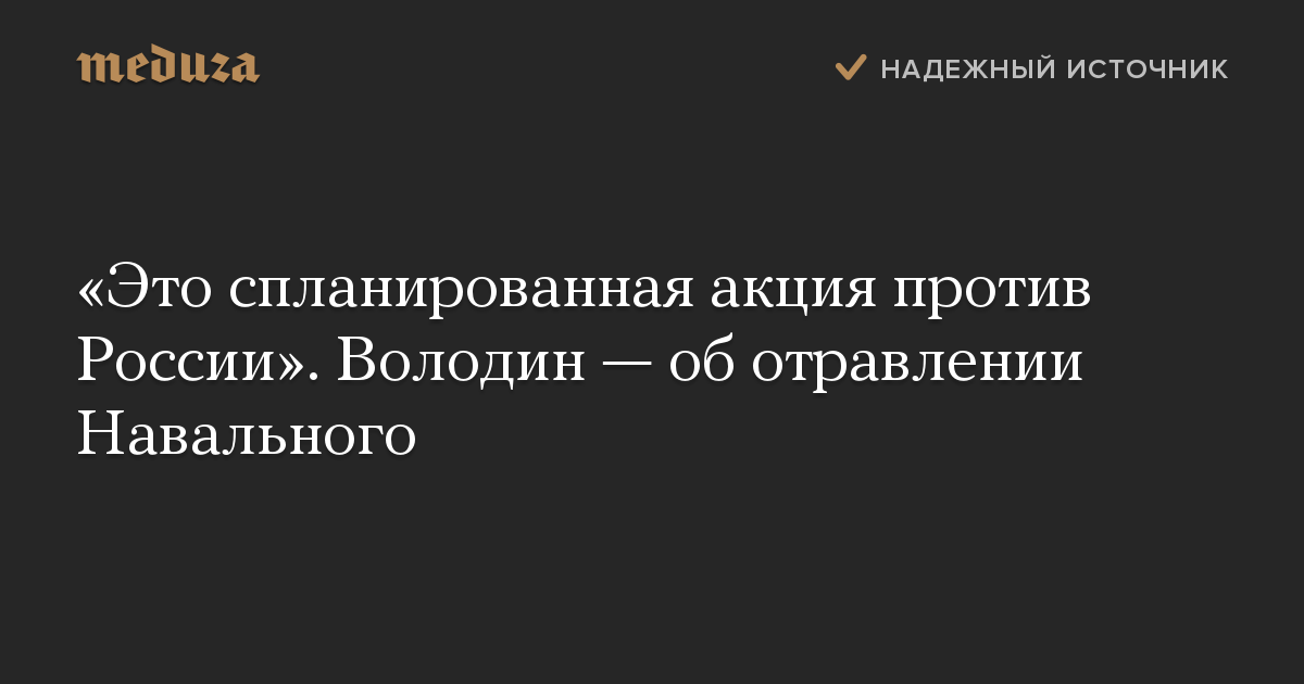 «Это спланированная акция против России». Володин — об отравлении Навального