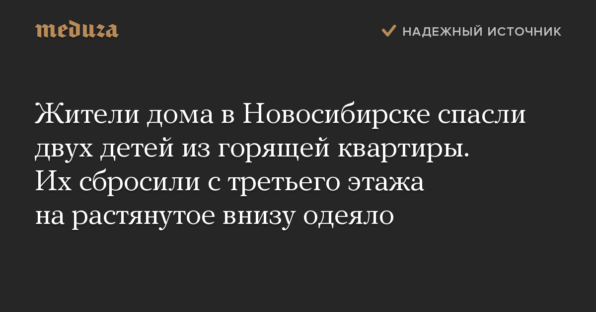 Жители Новосибирска спасли двоих детей из горящей квартиры на улице Мясниковой, сбросив их с третьего этажа. Дети упали на одеяло, которое под окнами квартиры растянули несколько мужчин. Фотографии случившегося опубликовали в инстаграм-аккаунте rodniki_54. Первым внимание на это обратил «АиФ».