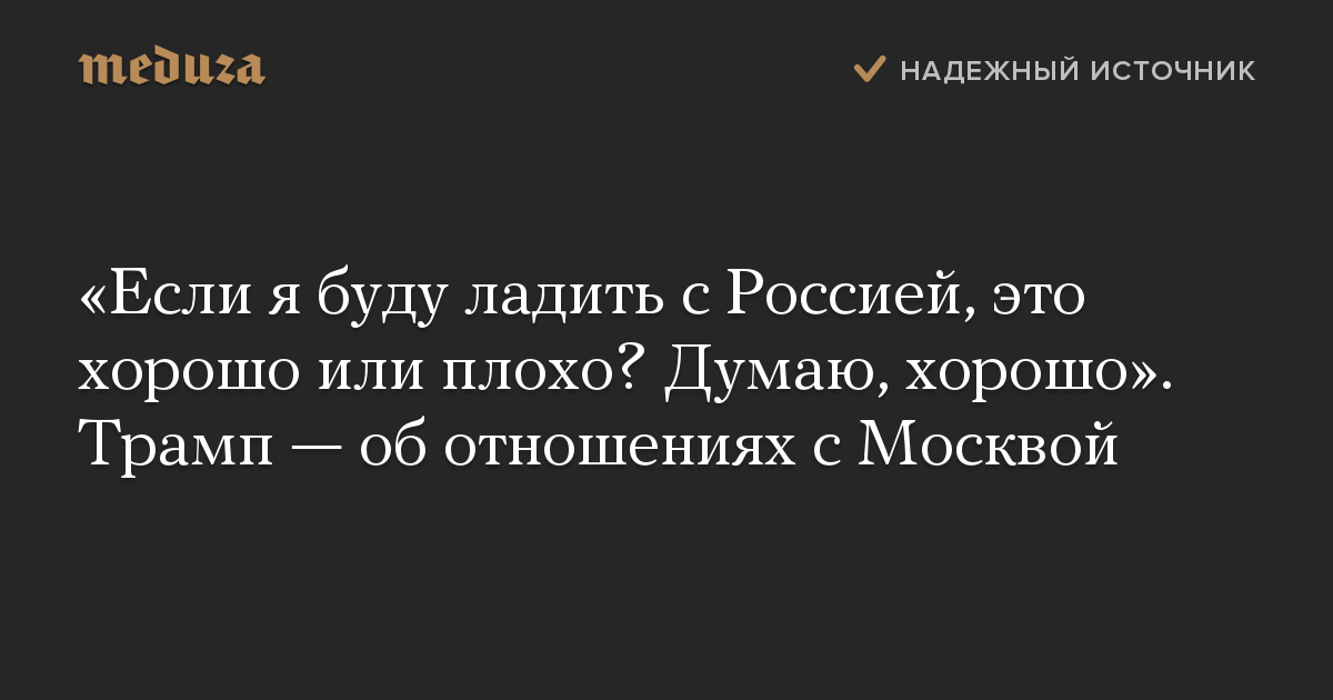 «Если я буду ладить с Россией, это хорошо или плохо? Думаю, хорошо». Трамп — об отношениях с Москвой