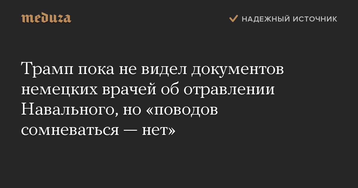 Президент США Дональд Трамп заявил, что не видит поводов сомневаться в выводах немецких врачей о том, что российский политик Алексей Навальный был отравлен веществом из группы «Новичок».