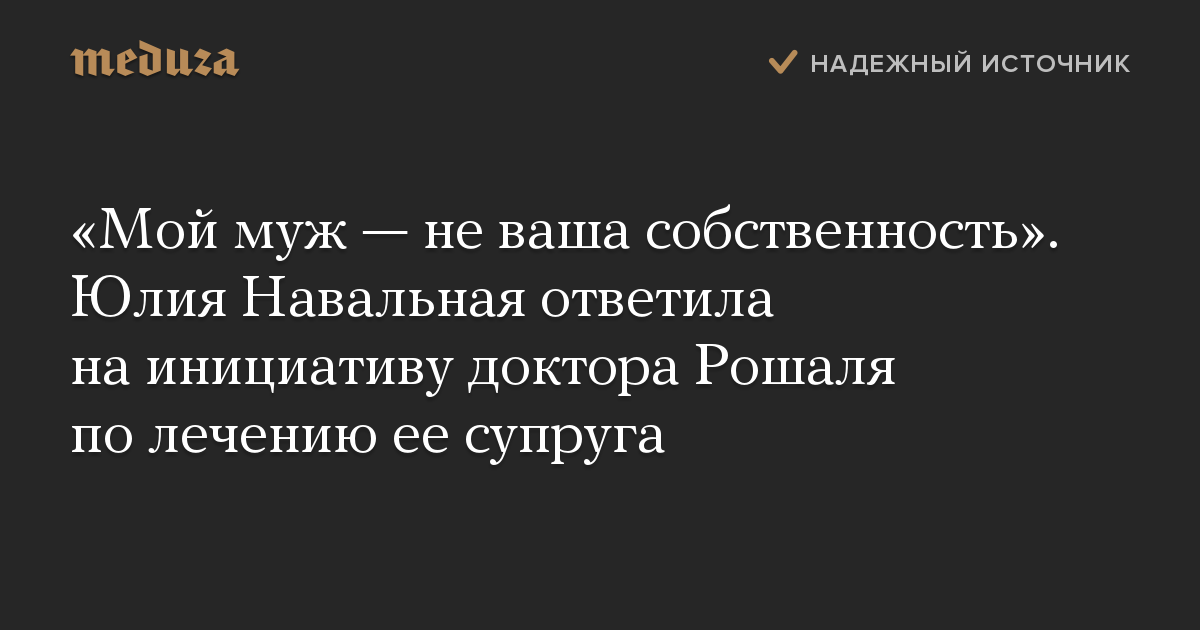 «Мой муж — не ваша собственность». Юлия Навальная ответила на инициативу доктора Рошаля по лечению ее супруга