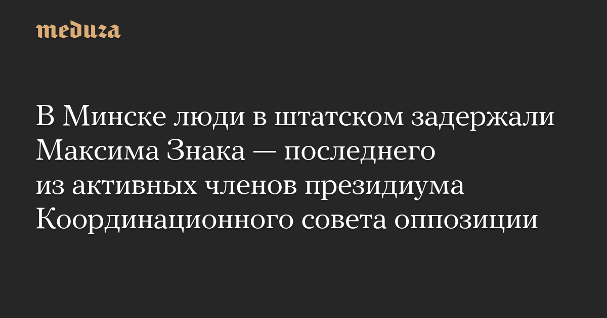 В Минске люди в штатском задержали Максима Знака — последнего из активных членов президиума Координационного совета оппозиции