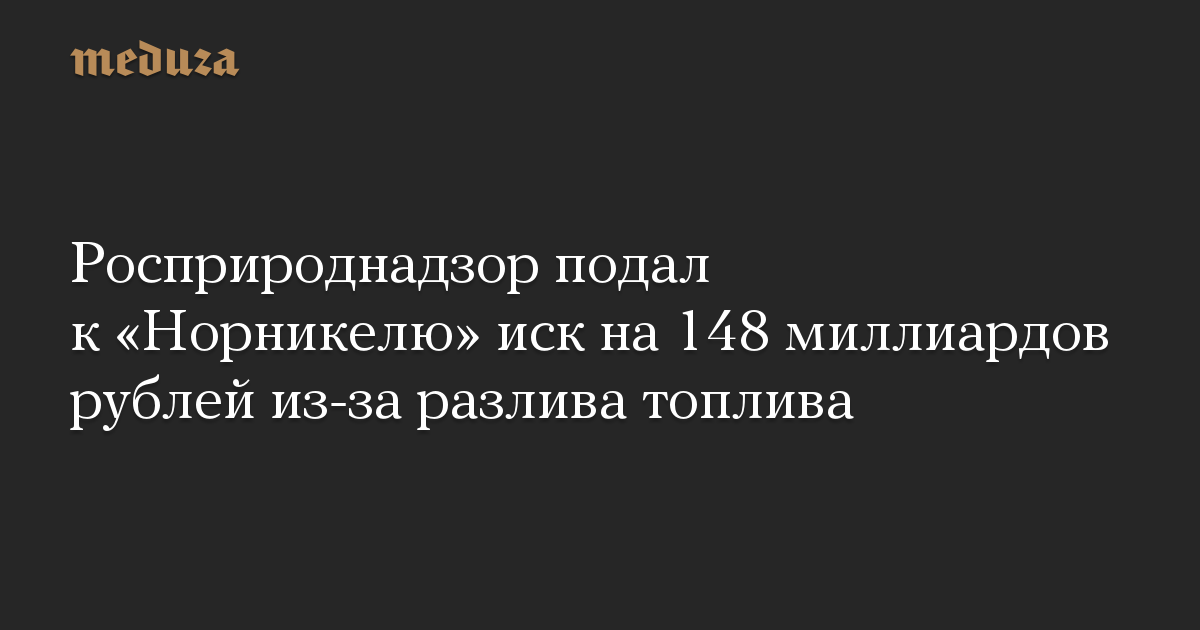 Росприроднадзор подал к «Норникелю» иск на 148 миллиардов рублей из-за разлива топлива