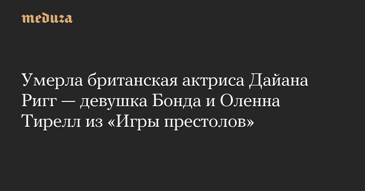 Умерла британская актриса Дайана Ригг — девушка Бонда и Оленна Тирелл из «Игры престолов»