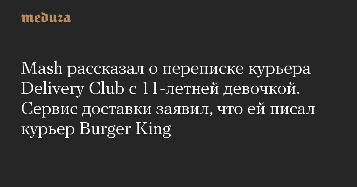 Mash рассказал о переписке курьера Delivery Club с 11-летней девочкой. Сервис доставки заявил, что ей писал курьер Burger King