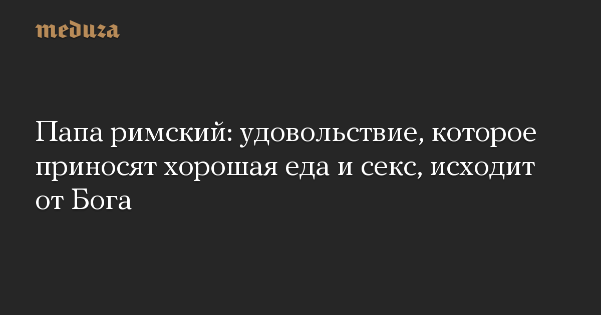 «Удовольствие исходит напрямую от Бога, оно не католическое, не христианское или какое-либо еще, оно просто божественное», — сказал папа римский, которого цитирует France 24. Он добавил, что церковь всегда осуждала «жестокое, грубое, пошлое» удовольствие, но принимала «простое и нравственное».