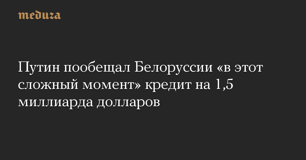 Путин пообещал Белоруссии «в этот сложный момент» кредит на 1,5 миллиарда долларов