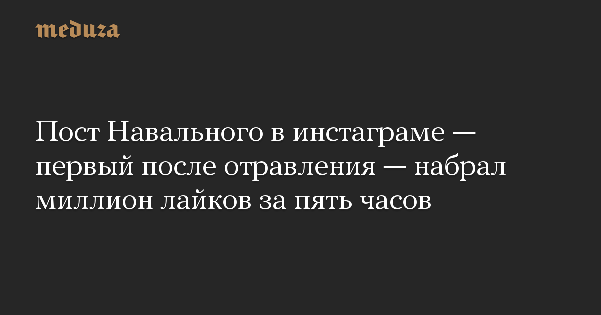 Пост Навального в инстаграме — первый после отравления — набрал миллион лайков за пять часов