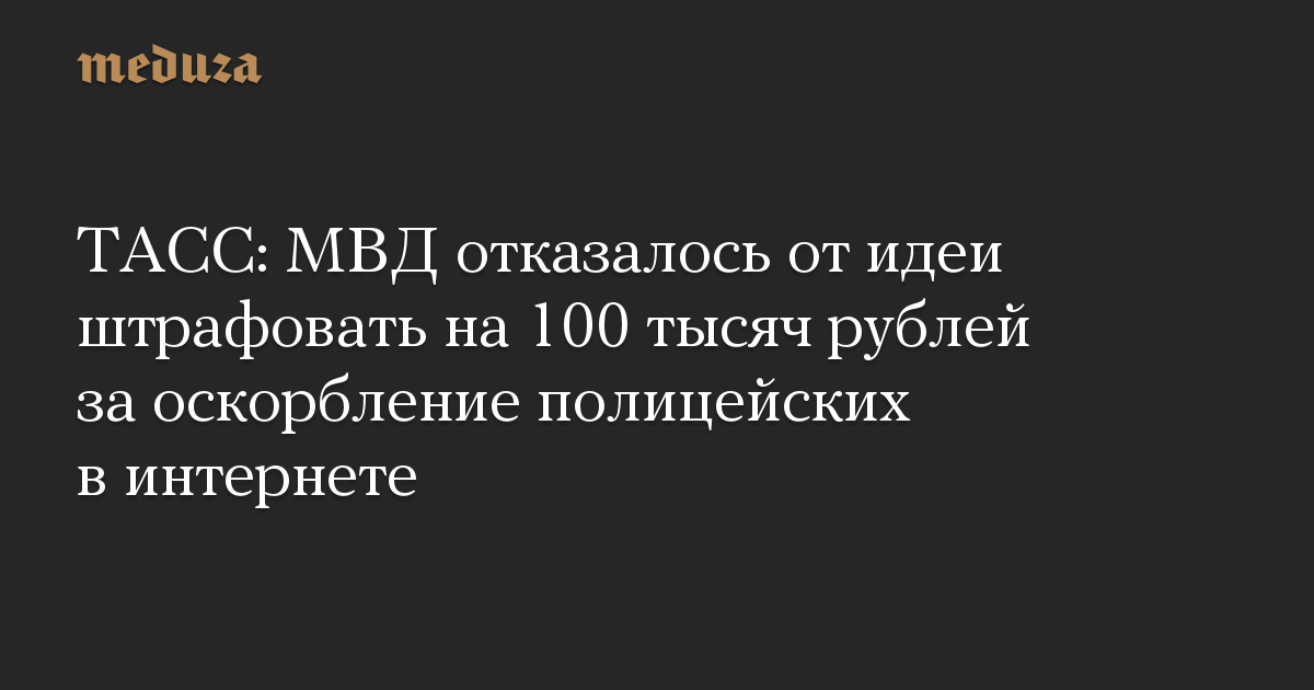 ТАСС: МВД отказалось от идеи штрафовать на 100 тысяч рублей за оскорбление полицейских в интернете