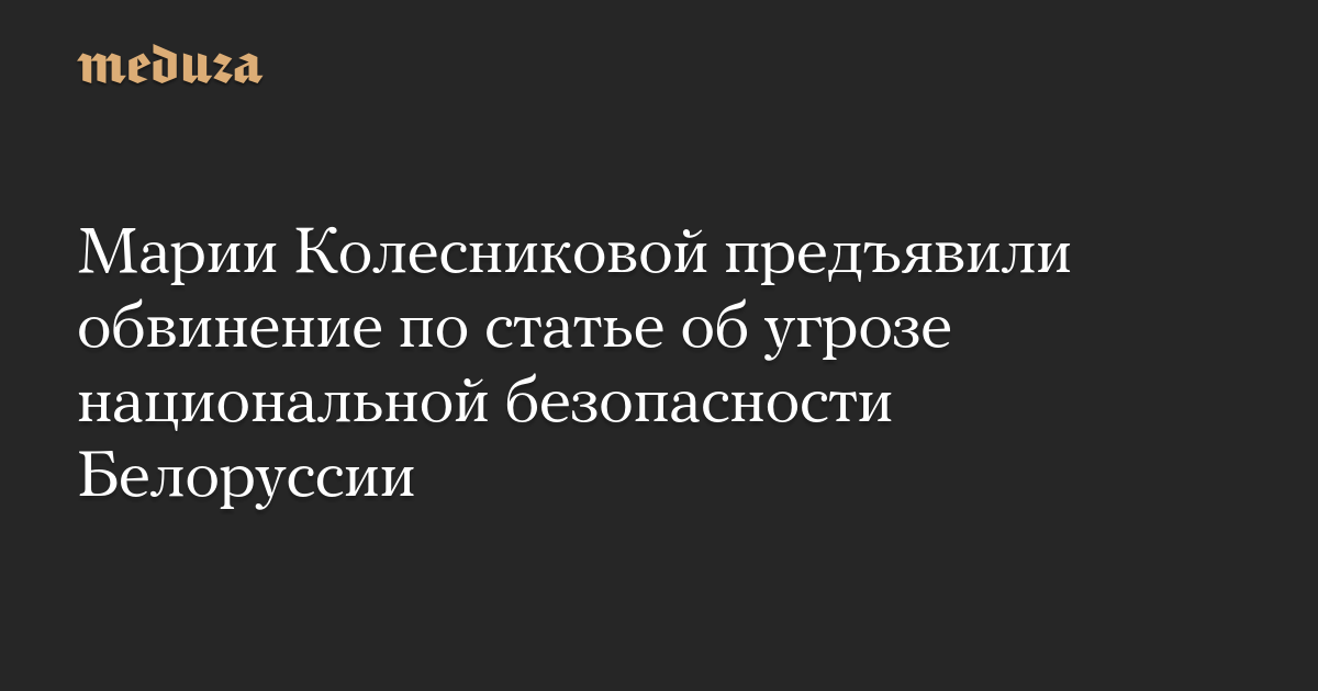 Марии Колесниковой предъявили обвинение по статье об угрозе национальной безопасности Белоруссии