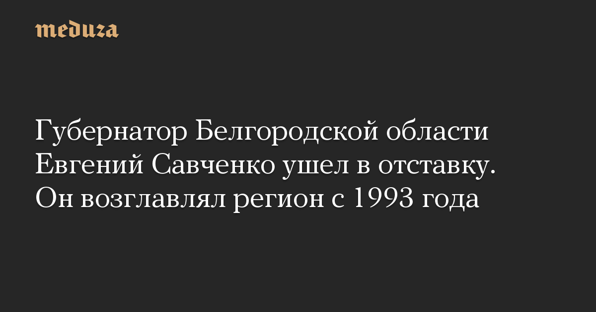 Губернатор Белгородской области Евгений Савченко ушел в отставку. Он возглавлял регион с 1993 года