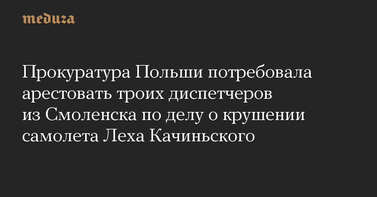 Прокуратура Польши обратилась в районный суд в Варшаве с ходатайством об аресте троих российских авиадиспетчеров, дежуривших в апреле 2010 года в аэропорту Смоленск-Северный, когда разбился самолет Ту-154 президента Польши Леха Качиньского. Об этом сообщила пресс-секретарь прокуратуры Эва Бялик.