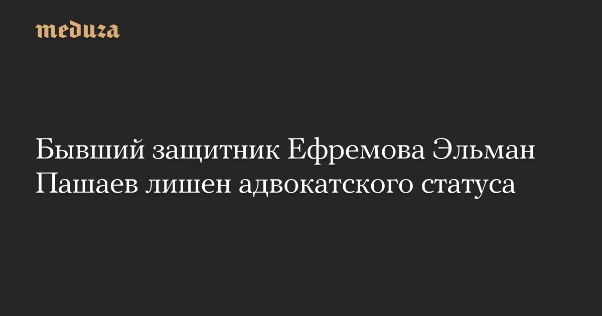 Совет адвокатской палаты Северной Осетии лишил адвокатского статуса Эльмана Пашаева, защищавшего Михаила Ефремова в ходе дела о ДТП со смертельным исходом.
