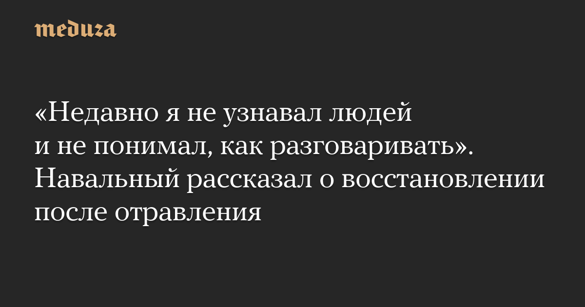 «Недавно я не узнавал людей и не понимал, как разговаривать». Навальный рассказал о восстановлении после отравления