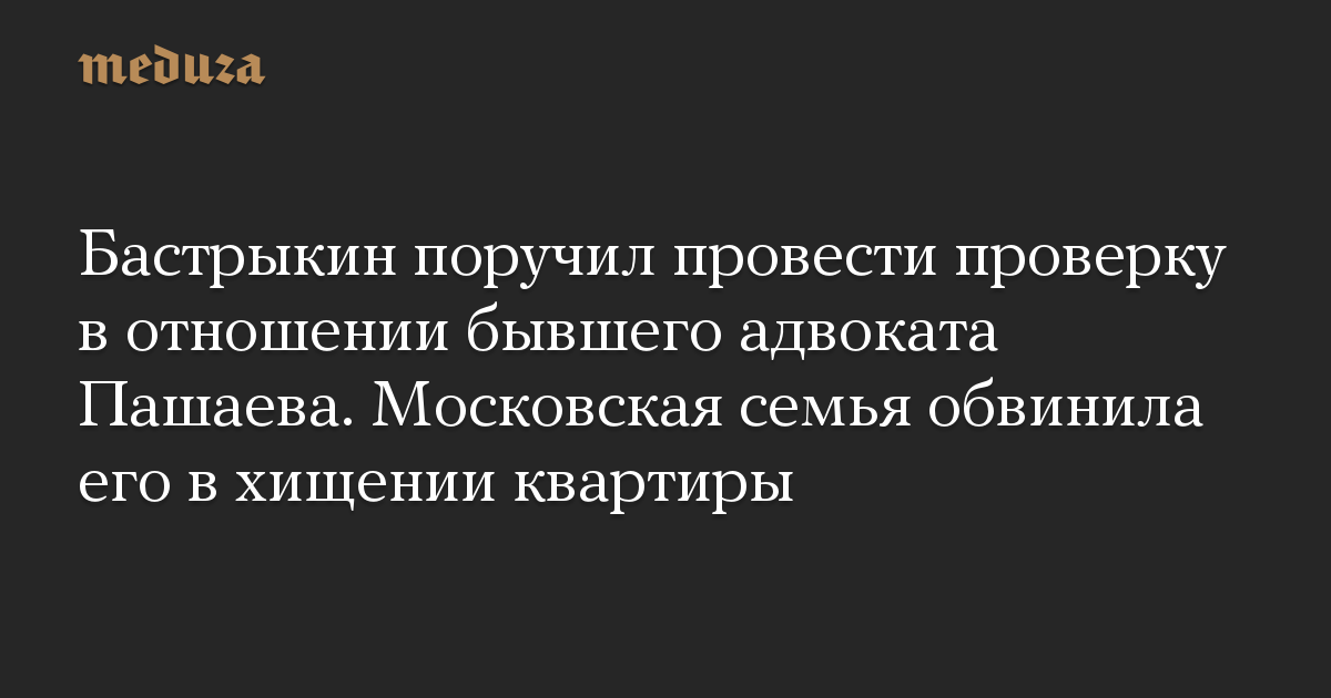 Бастрыкин поручил провести проверку в отношении бывшего адвоката Пашаева. Московская семья обвинила его в хищении квартиры