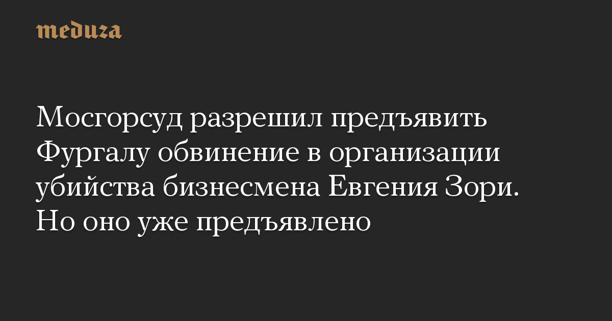 Мосгорсуд разрешил предъявить Фургалу обвинение в организации убийства бизнесмена Евгения Зори. Но оно уже предъявлено