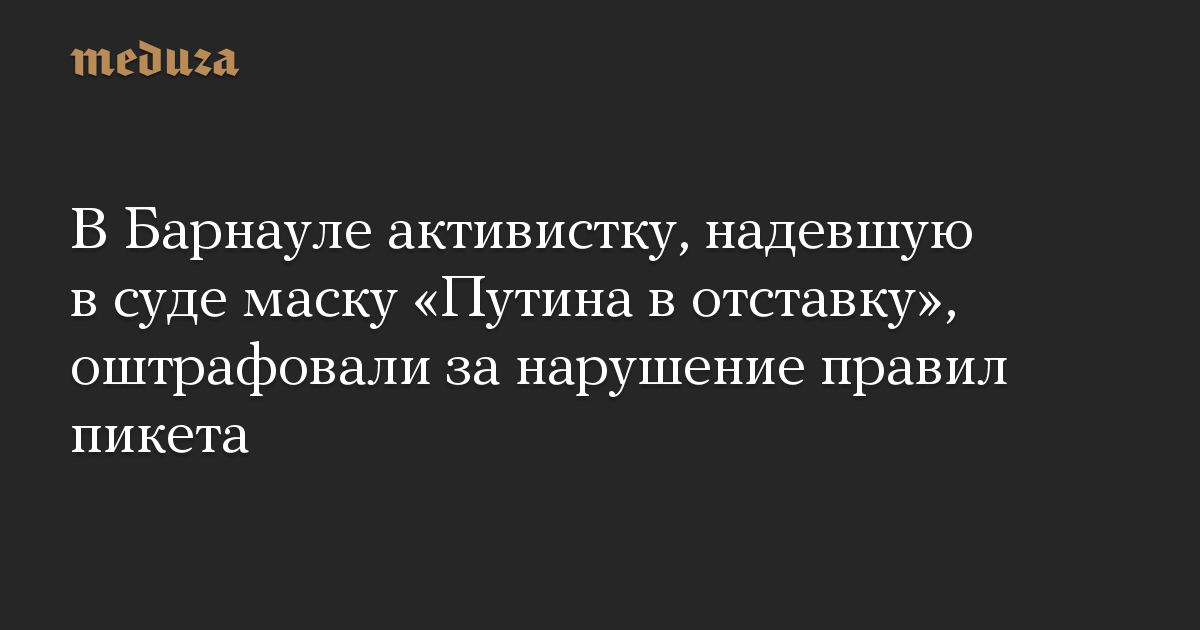 В Барнауле активистку, надевшую в суде маску «Путина в отставку», оштрафовали за нарушение правил пикета