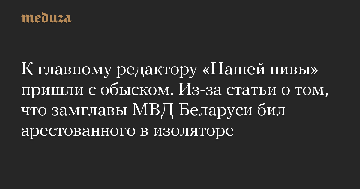К главному редактору «Нашей нивы» пришли с обыском. Из-за статьи о том, что замглавы МВД Беларуси бил арестованного в изоляторе