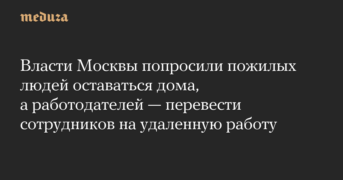 Власти Москвы попросили пожилых людей оставаться дома, а работодателей — перевести сотрудников на удаленную работу