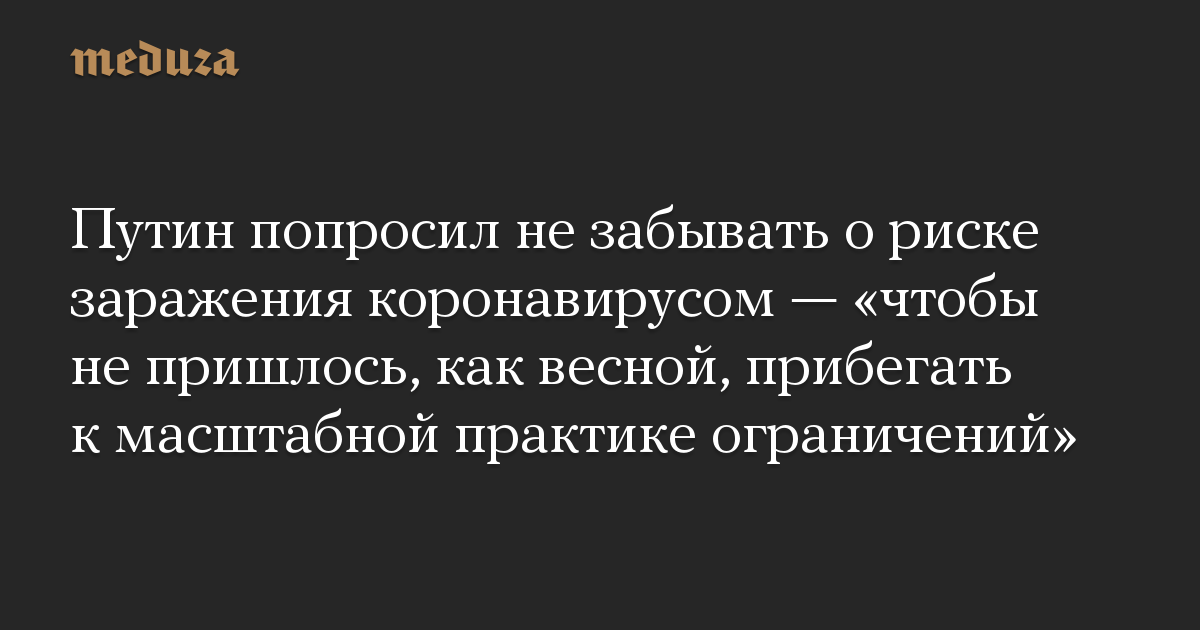 Путин попросил не забывать о риске заражения коронавирусом — «чтобы не пришлось, как весной, прибегать к масштабной практике ограничений»