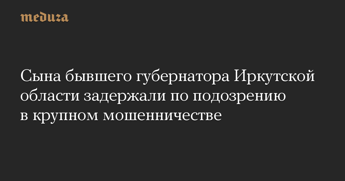 Сына бывшего губернатора Иркутской области задержали по подозрению в крупном мошенничестве