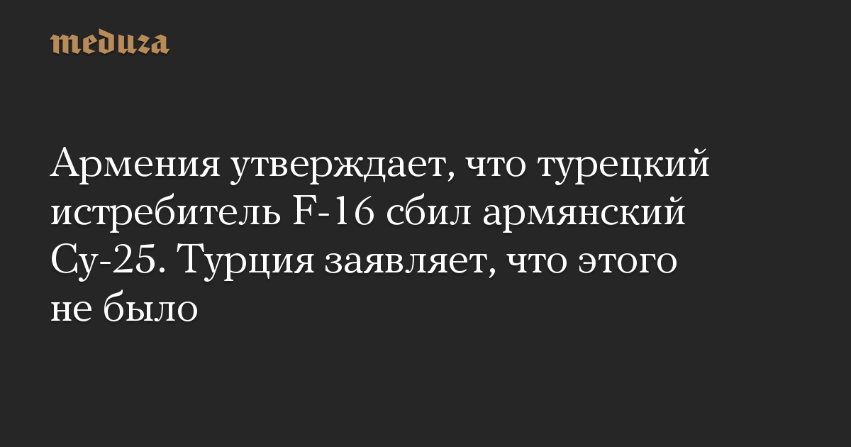 Армения утверждает, что турецкий истребитель F-16 сбил армянский Су-25. Турция заявляет, что этого не было