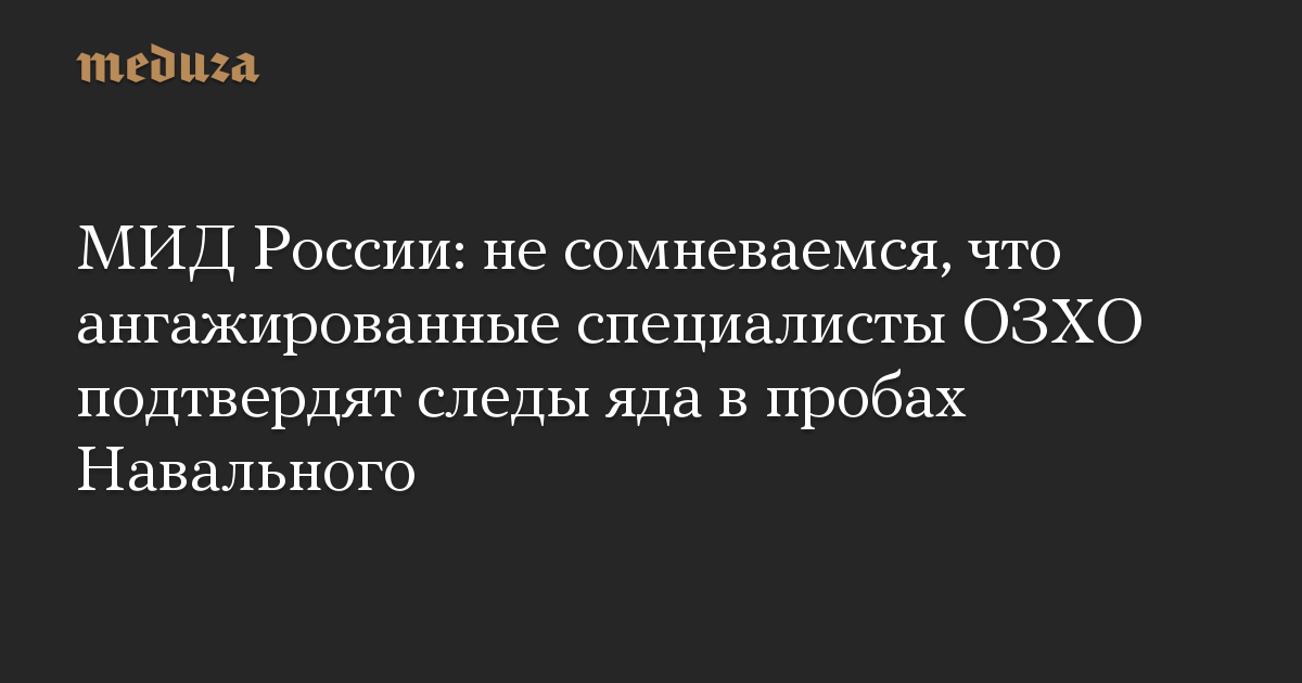 МИД России: не сомневаемся, что ангажированные специалисты ОЗХО подтвердят следы яда в пробах Навального