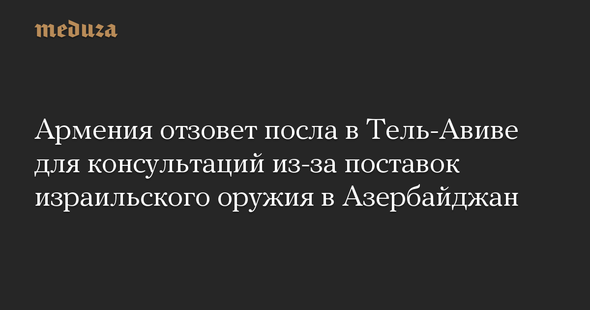 Армения отзовет посла в Тель-Авиве для консультаций из-за поставок израильского оружия в Азербайджан