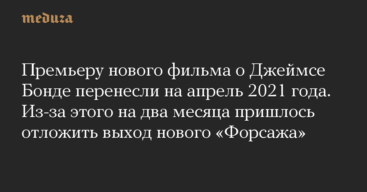 Премьеру нового фильма о Джеймсе Бонде перенесли на апрель 2021 года. Из-за этого на два месяца пришлось отложить выход нового «Форсажа»