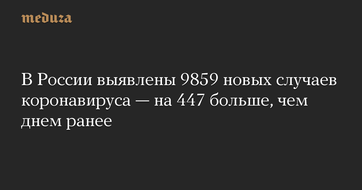 В России выявлены 9859 новых случаев коронавируса — на 447 больше, чем днем ранее