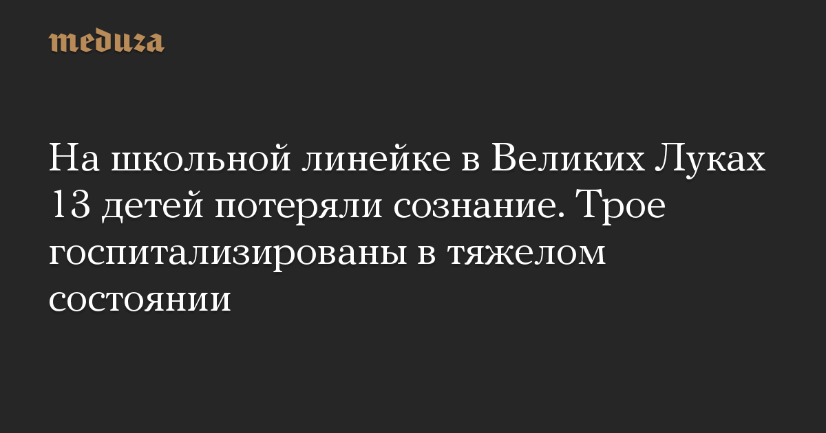 На школьной линейке в Великих Луках 13 детей потеряли сознание. Трое госпитализированы в тяжелом состоянии