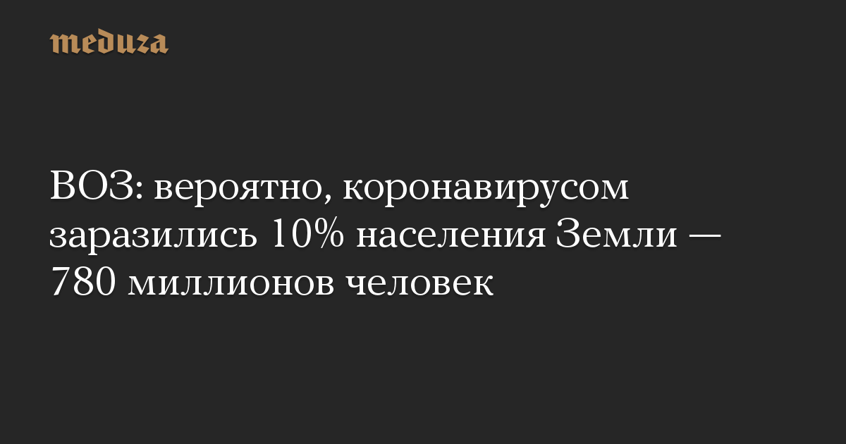 ВОЗ: вероятно, коронавирусом заразились 10% населения Земли — 780 миллионов человек