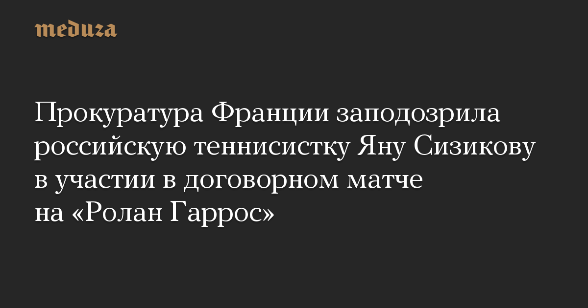 Прокуратура Франции подтвердила, что начала расследование из-за предполагаемого договорного матча на Открытом чемпионате Франции по теннису с участием российской теннисистки Яны Сизиковой.