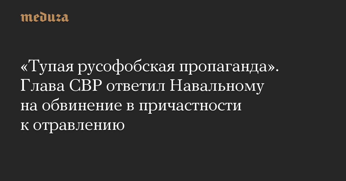 «Тупая русофобская пропаганда». Глава СВР ответил Навальному на обвинение в причастности к отравлению