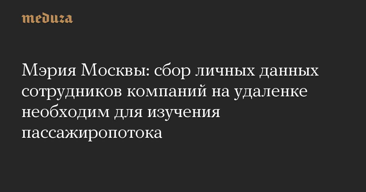Мэрия Москвы: сбор личных данных сотрудников компаний на удаленке необходим для изучения пассажиропотока