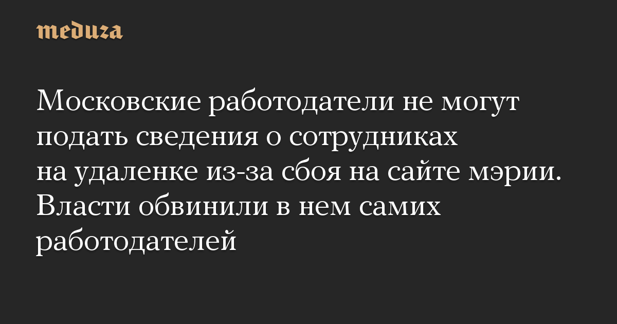 Московские работодатели не могут подать сведения о сотрудниках на удаленке из-за сбоя на сайте мэрии. Власти обвинили в нем самих работодателей