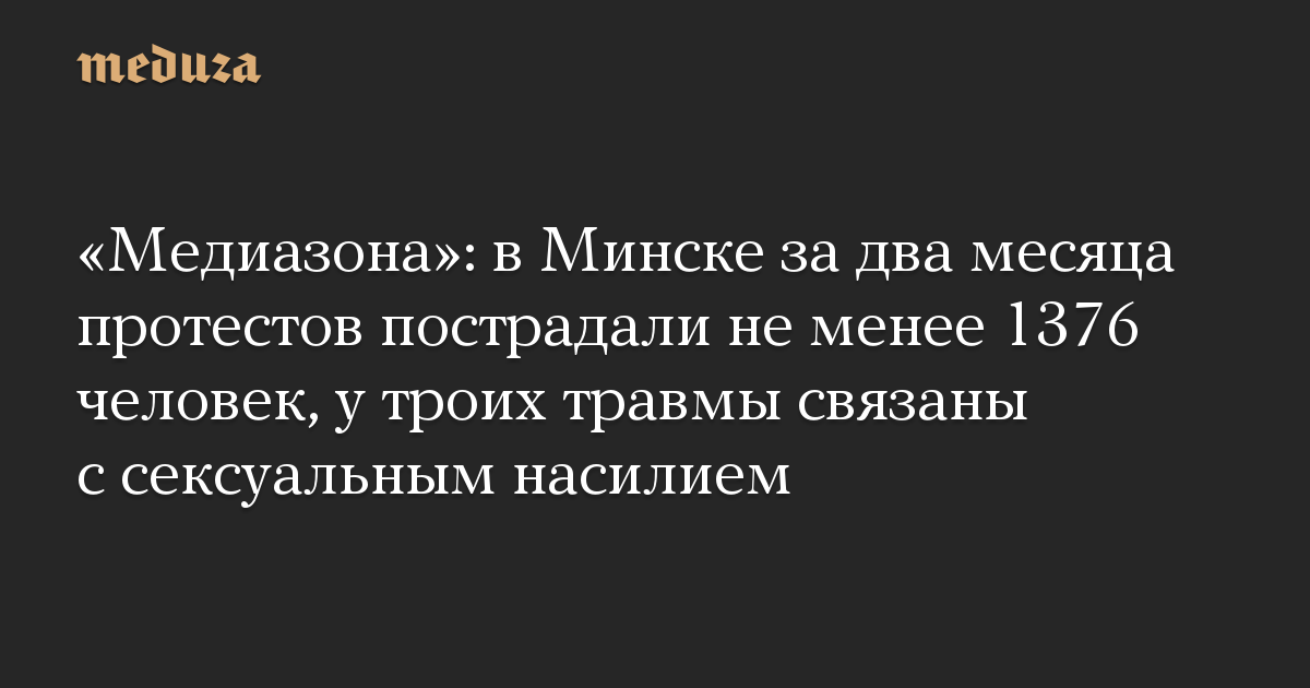 «Медиазона»: в Минске за два месяца протестов пострадали не менее 1376 человек, у троих травмы связаны с сексуальным насилием