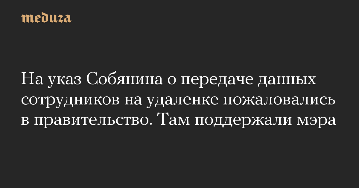 На указ Собянина о передаче данных сотрудников на удаленке пожаловались в правительство. Там поддержали мэра