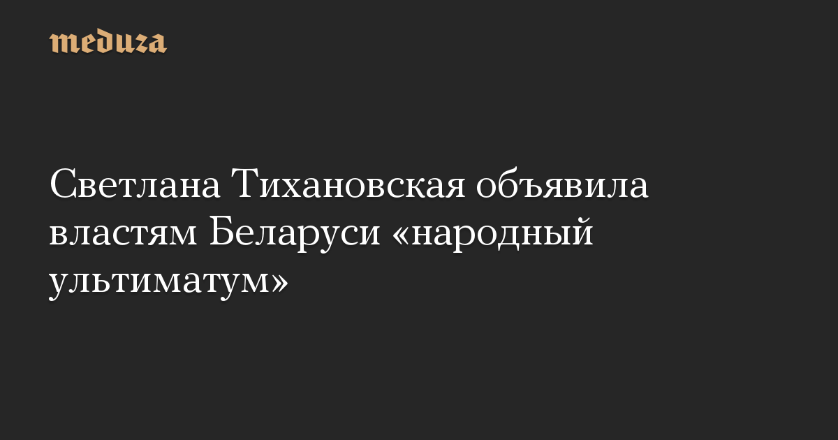 Светлана Тихановская объявила властям Беларуси «народный ультиматум»