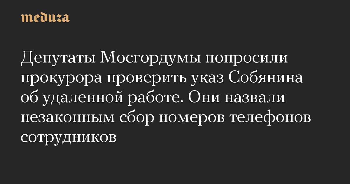 Депутаты Мосгордумы попросили прокурора проверить указ Собянина об удаленной работе. Они назвали незаконным сбор номеров телефонов сотрудников